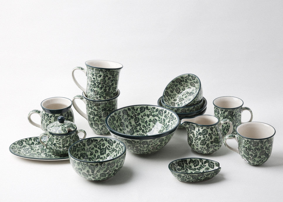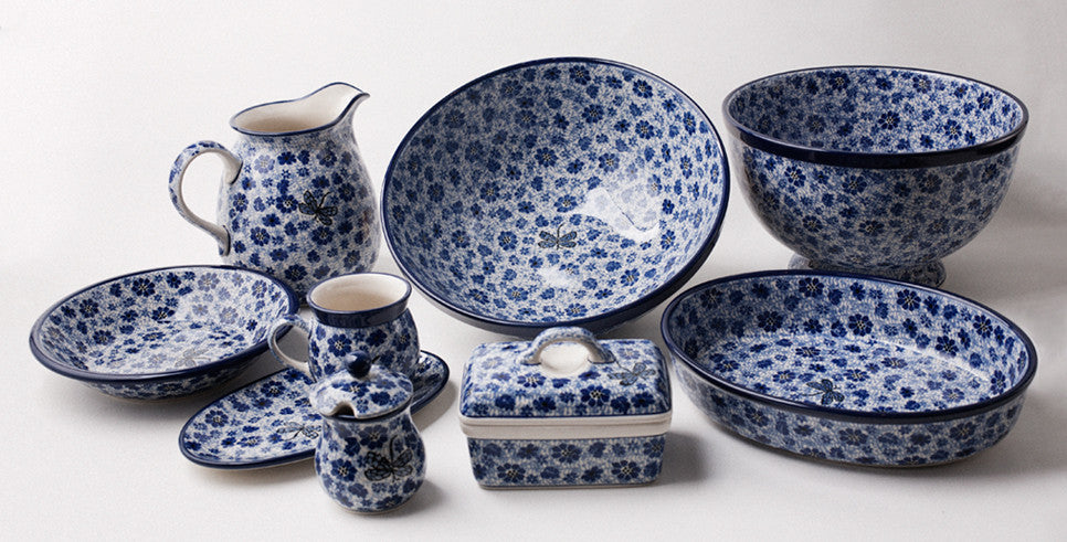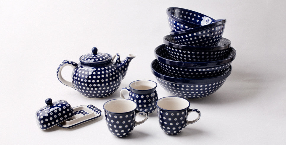 Entdecken Sie traditionelles polnisches Keramikgeschirr: zeitlos schön und (fast!) unzerbrechlich, festlich und dennoch alltagstauglich. Bunzlauer Keramikgeschirr verbindet Design und Tradition. Ob Kannen, Café-au-lait- Bols, Senfgefäße, Teller, Töpfe oder Backformen, jedes Stück ist einzigartig. Die zierlichen farbigen Ornamente, vom klassischen Pfauenauge bis zum modernen Design, werden mit Schwammstempel und Pinsel auf die cremig-weiße Oberfläche aufgetragen. Aufgrund ihrer hohen Qualität ist Bunzlauer Keramik sehr beliebt: Sie ist für Geschirrspüler und Mikrowelle geeignet, feuerfest, cadmium und bleifrei.